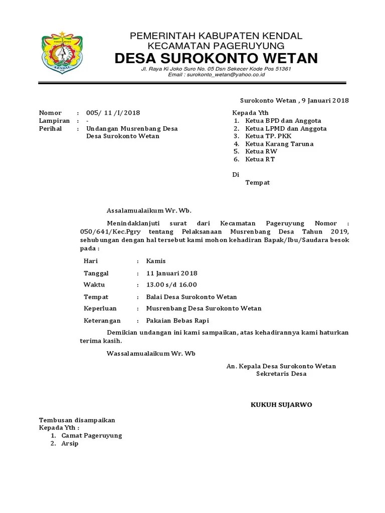 5 surat undangan resmi karang taruna. Panitia pemilihan ketua rukun tetangga (rt) 02 rw 11. Contoh surat undangan rapat perusahaan. Contoh surat undangan rapat desa. Dimana tujuannya adalah untuk mengundang dan dengan hormat, sehubungan dengan akan diselenggarakannya acara upacara adat tahunan desa kulon progo, diperlukan beberapa persiapan.